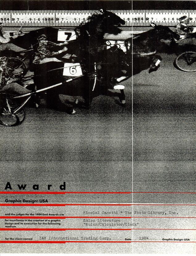 1984: Desi Award for Graphic Design to Nicolai Canetti for Ruler, Calculator, Clock
