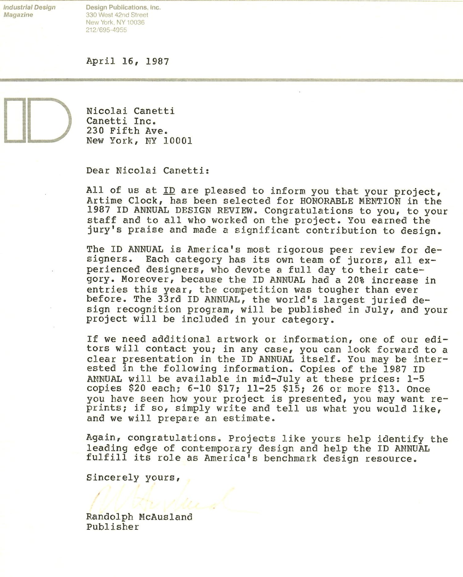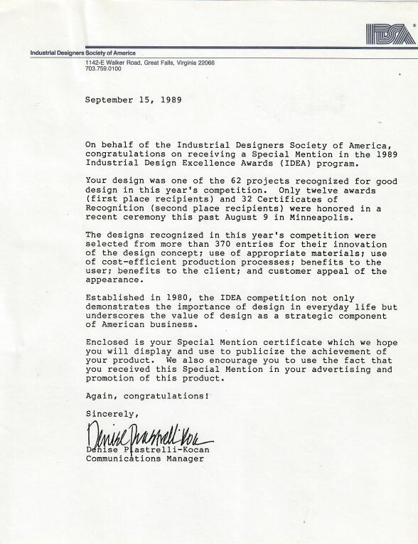 1989: Industrial Design Magazine Honorable Mention to Nicolai Canetti