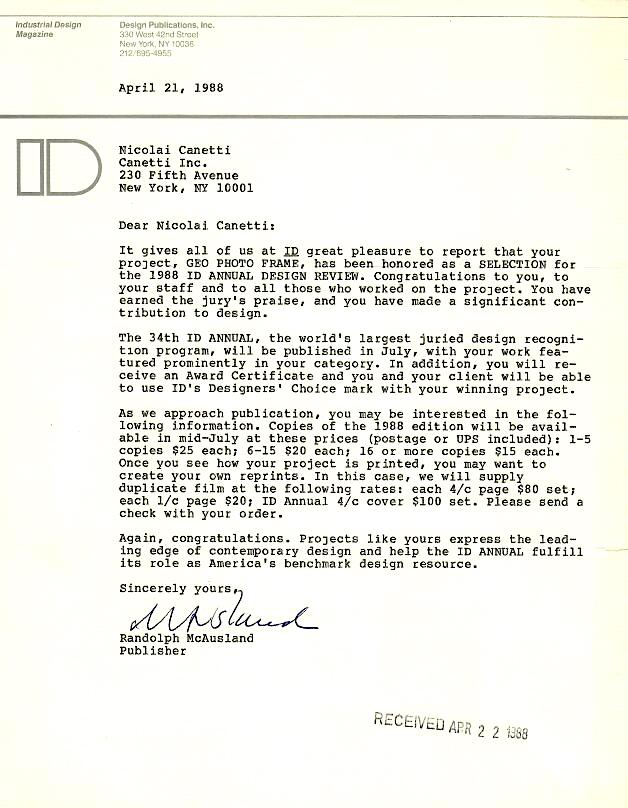 1989: Industrial Design Magazine GEO PHOTO FRAME Selection