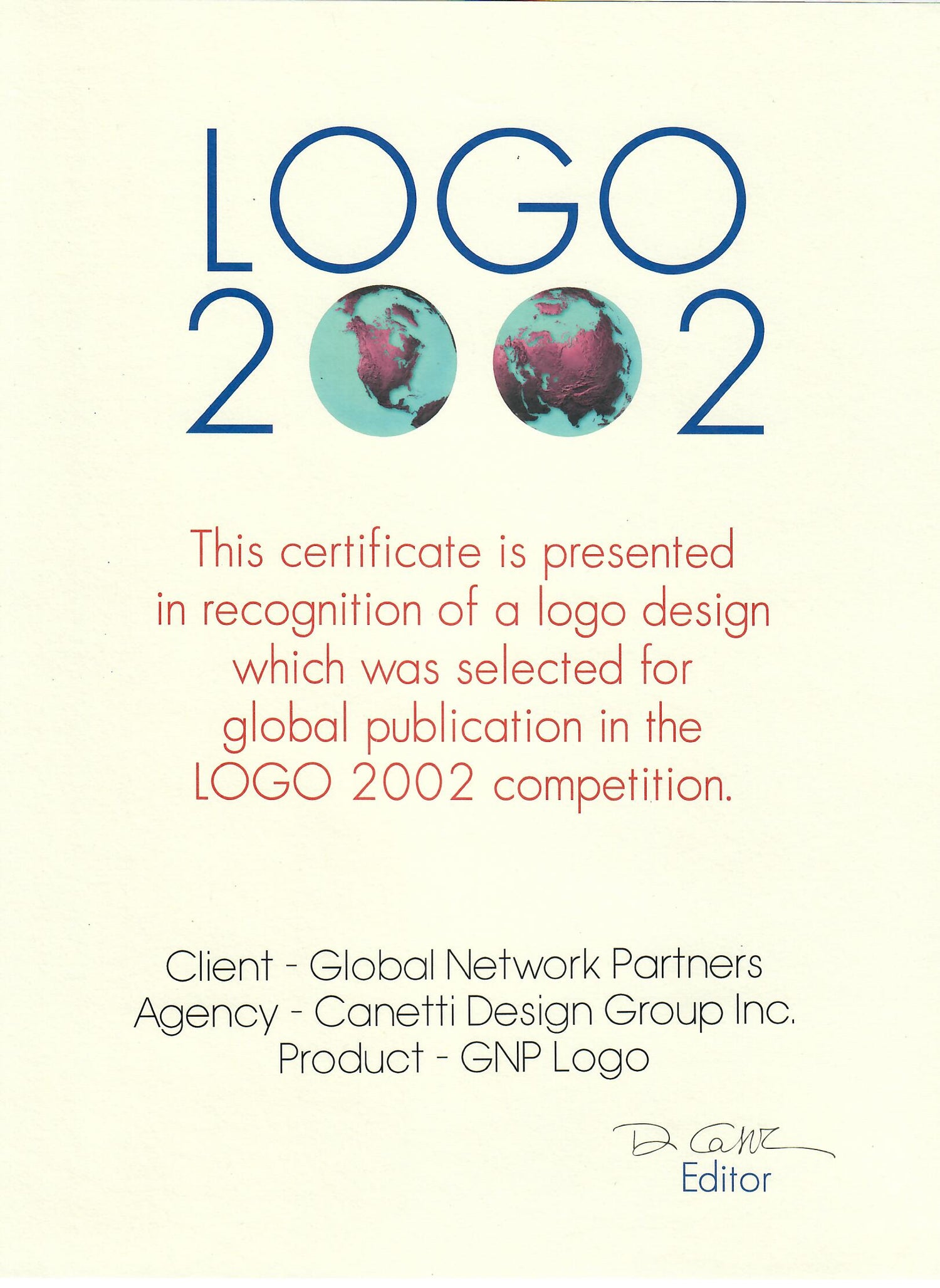 2002: Logo 2002 Design Selection to Canetti Design Group