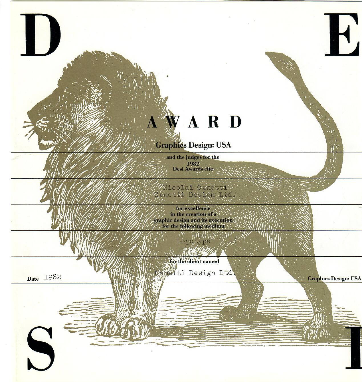 1982: Desi Awards for Graphics Design to Nicolai Canetti, Canetti Design Group