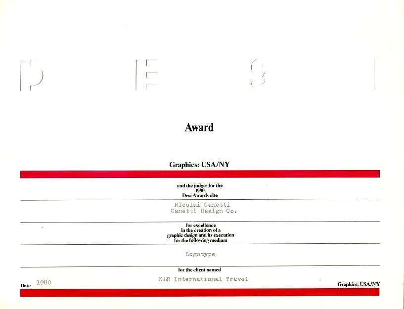 1980: Desi Awards for Graphics Design to Nicolai Canetti, Canetti Design Group