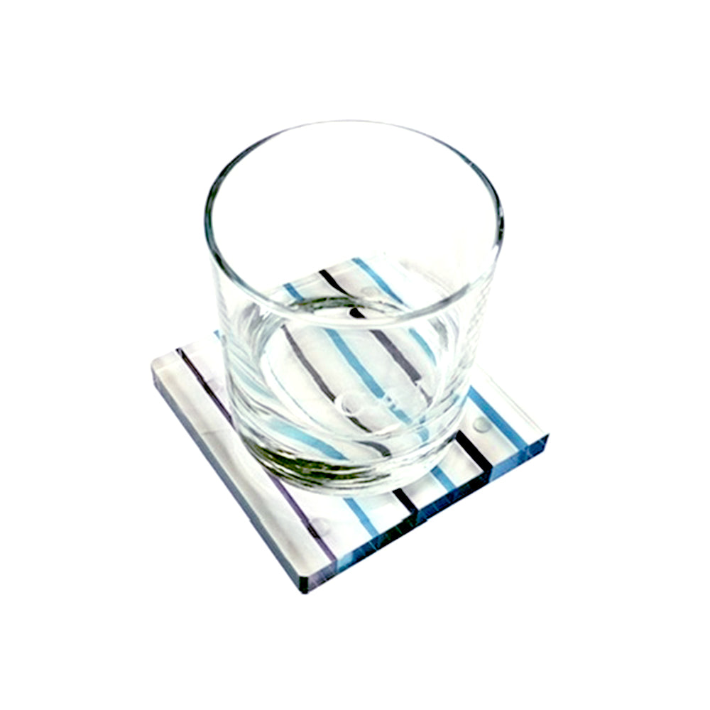 Made from layered acrylic in striking color combinations, each 4" x 4" x 0.5" coaster is a little piece of functional art. Choose from: