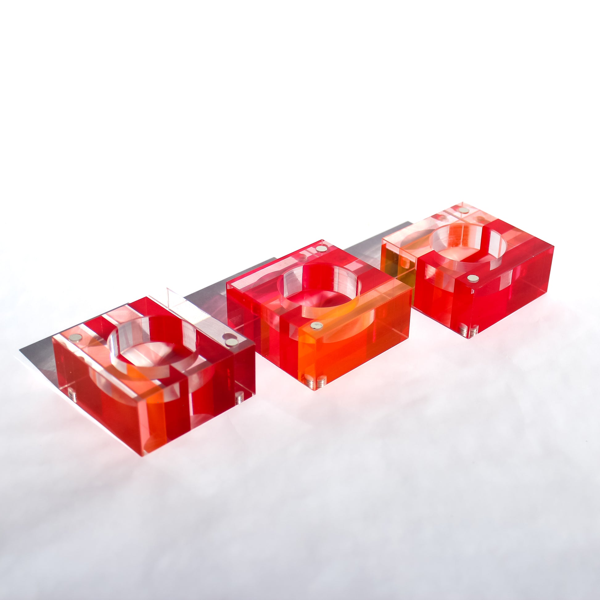 Magnetic Acrylic Tea Candle Holders - Red/Orange Set of 3